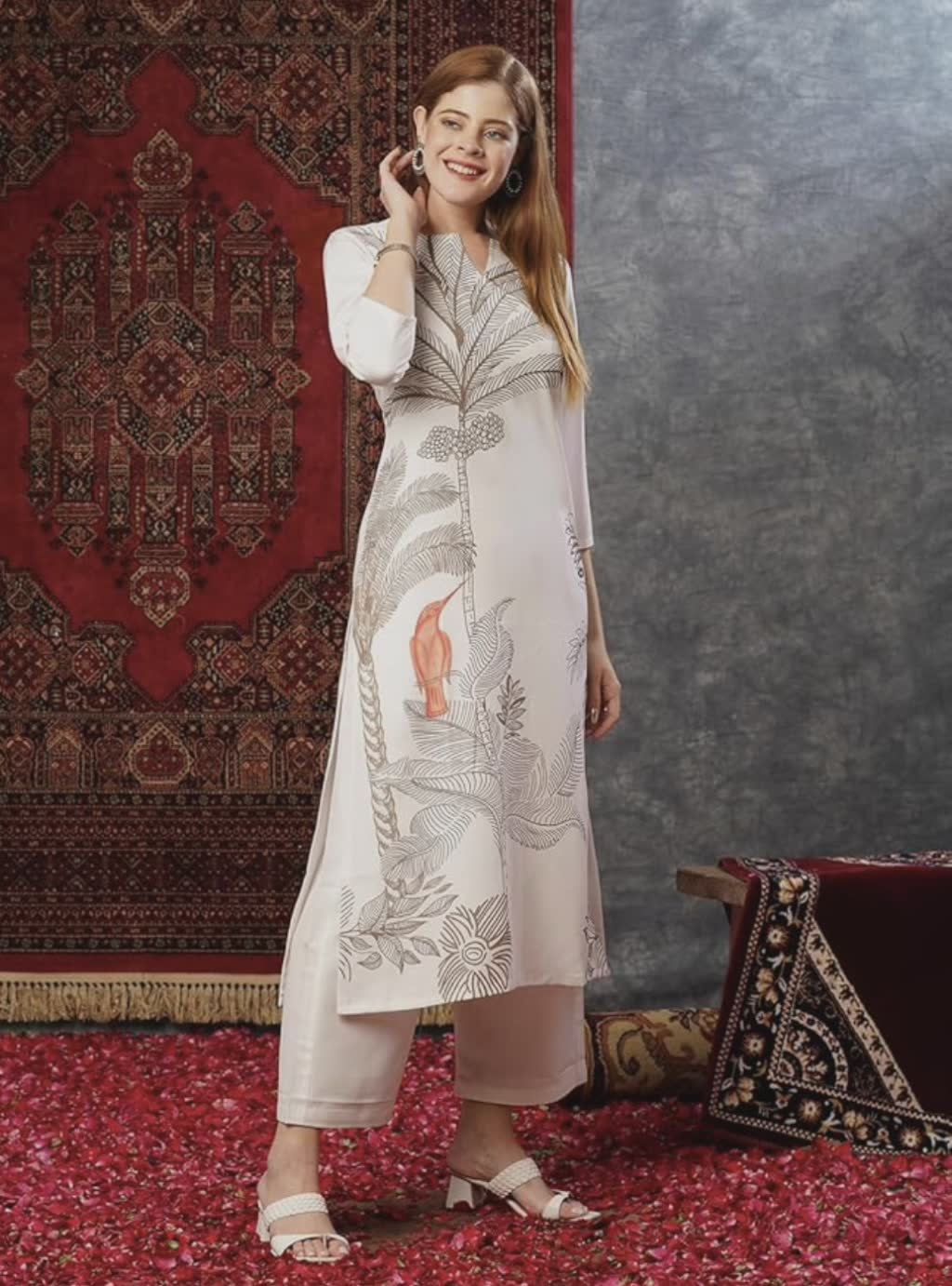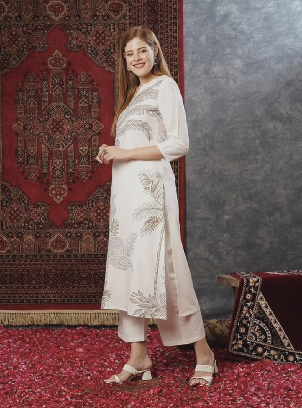 • This set includes: 1 Kurta and 1 Pant|| Work :- Printed || Neck Style:- V-Neck