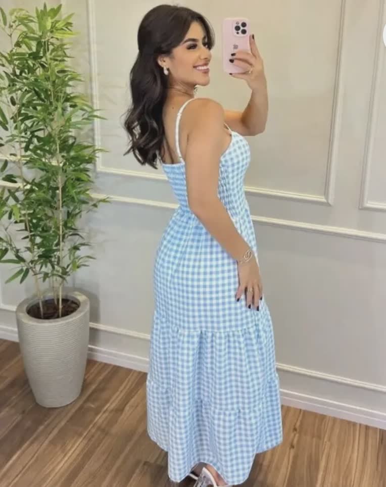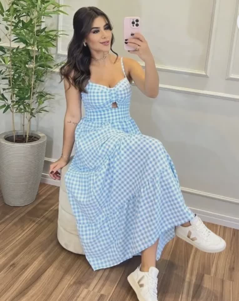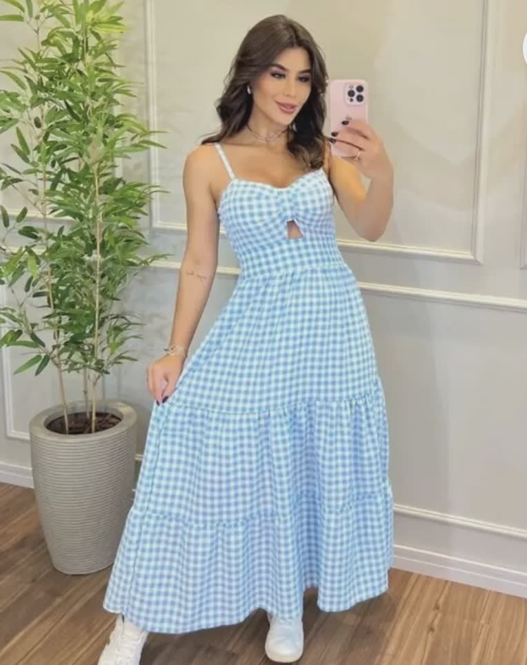 GINGHAM COTTON TIERED MAXI DRESS